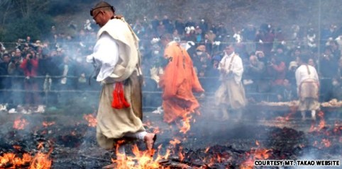 De asemenea in Japonia, calugarii luptatori – yamabushi isi demonstrau capacitatile paranormale in acest fel. Maestri in artele martiale, yamabushi demonstrau abilitati iesite din comun, indoiau sageti sau bare de metal cu partile sensibile ale corpului, cum este zona gatului, spargeau pietre cu mainile goale sau pasesc pe carbuni incinsi in timp ce recita mantre si tin mainile in mudre specifice. Si astazi in cadrul festivalului Hiwatari participantii pot pasi alaturi de yamabushi pe carbunii incinsi.